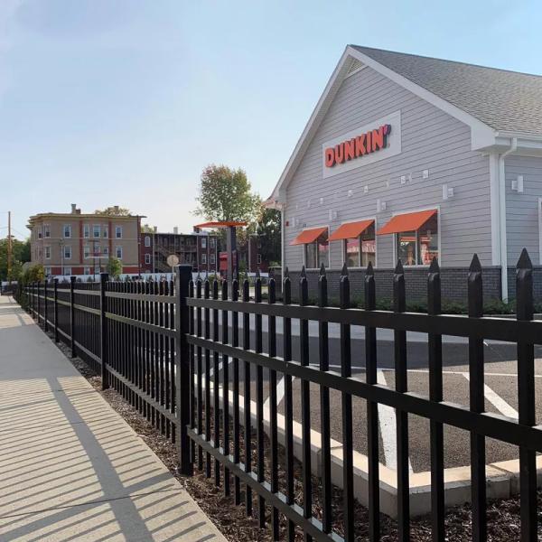 Nothing projects the elegance and security of an iron fence. Our iron fence products come in steel with a baked on powder coat finish. Residential grades are available from 3' to 6' tall. Commercial grades come 6' to 8' tall. There are many styles and accessories available. Enjoy the strength, durability, and low maintenence cost of iron fencing.